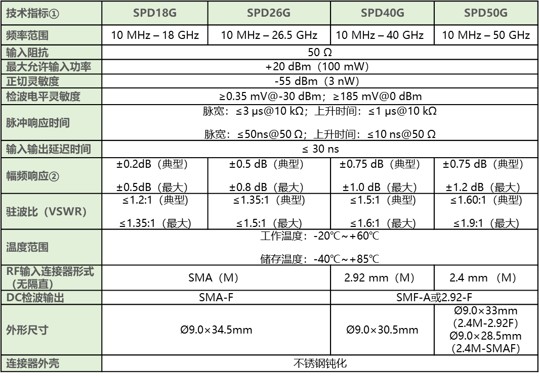 SPD50G+:10MHz~50GHz高性能同轴检波器,正检波电压输出;